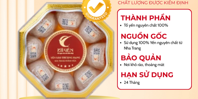 Zii Yến cam kết không sử dụng chất bảo quản và phụ gia hoá học. Quy trình sấy khô 100% được kiểm soát nghiêm ngặt, giúp giữ trọn dưỡng chất tự nhiên, đảm bảo trọng lượng thật – chất lượng thật khi đến tay người tiêu dùng.