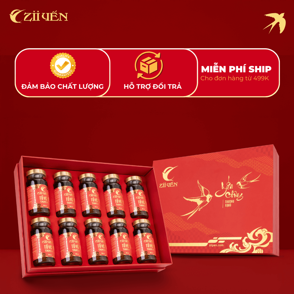 Hộp 10 Hũ Tổ Yến Tam Vị 3000mg – 150ml từ Zii Yến là lựa chọn lý tưởng cho món quà tặng cao cấp, vừa sang trọng, vừa thiết thực.