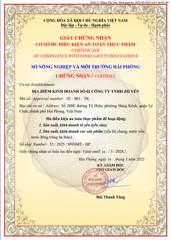 ✅ Chứng nhận an toàn thực phẩm đầy đủ – Hồ sơ công bố chất lượng minh bạch